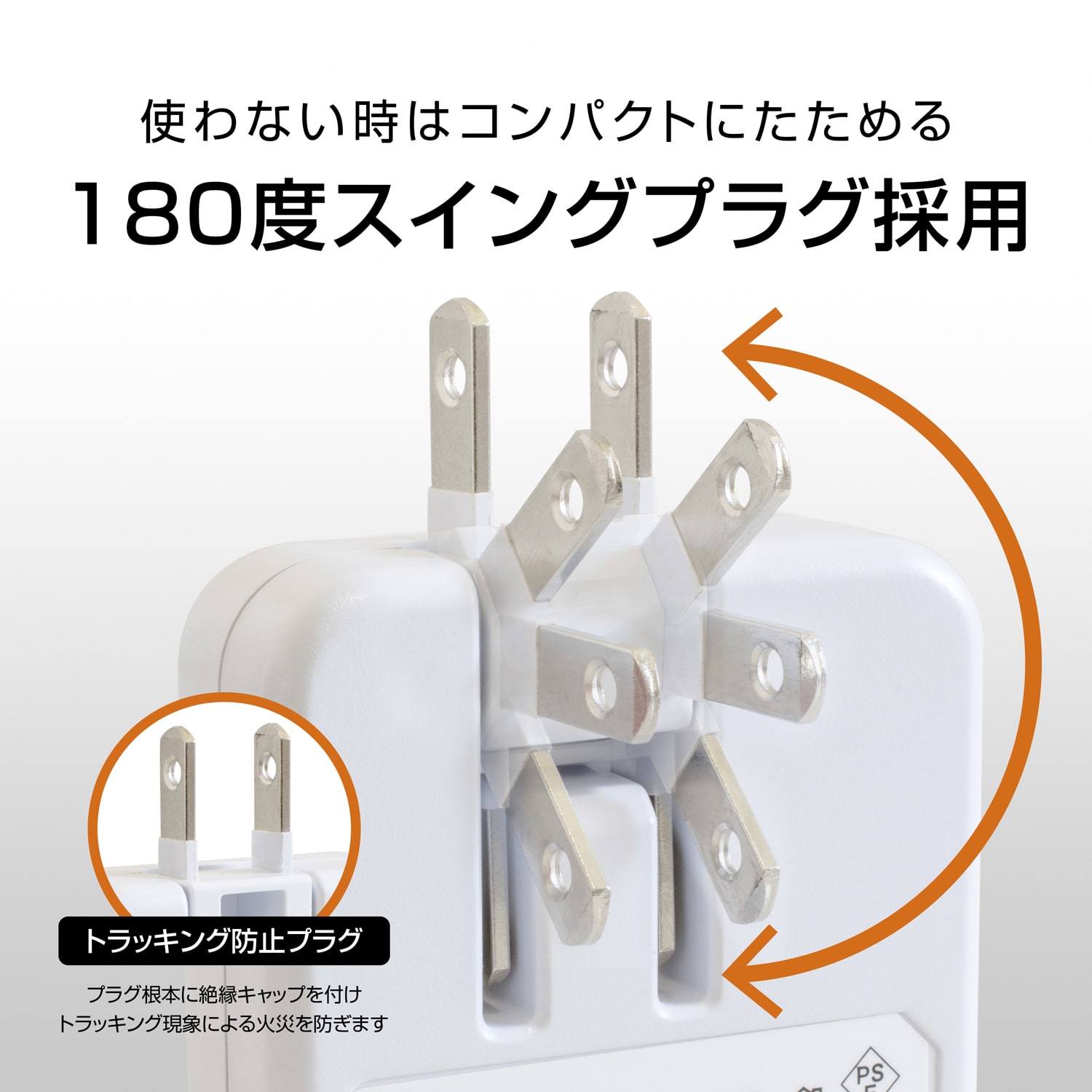 100-240Vの入力電圧に対応しており、海外旅行にも最適です。