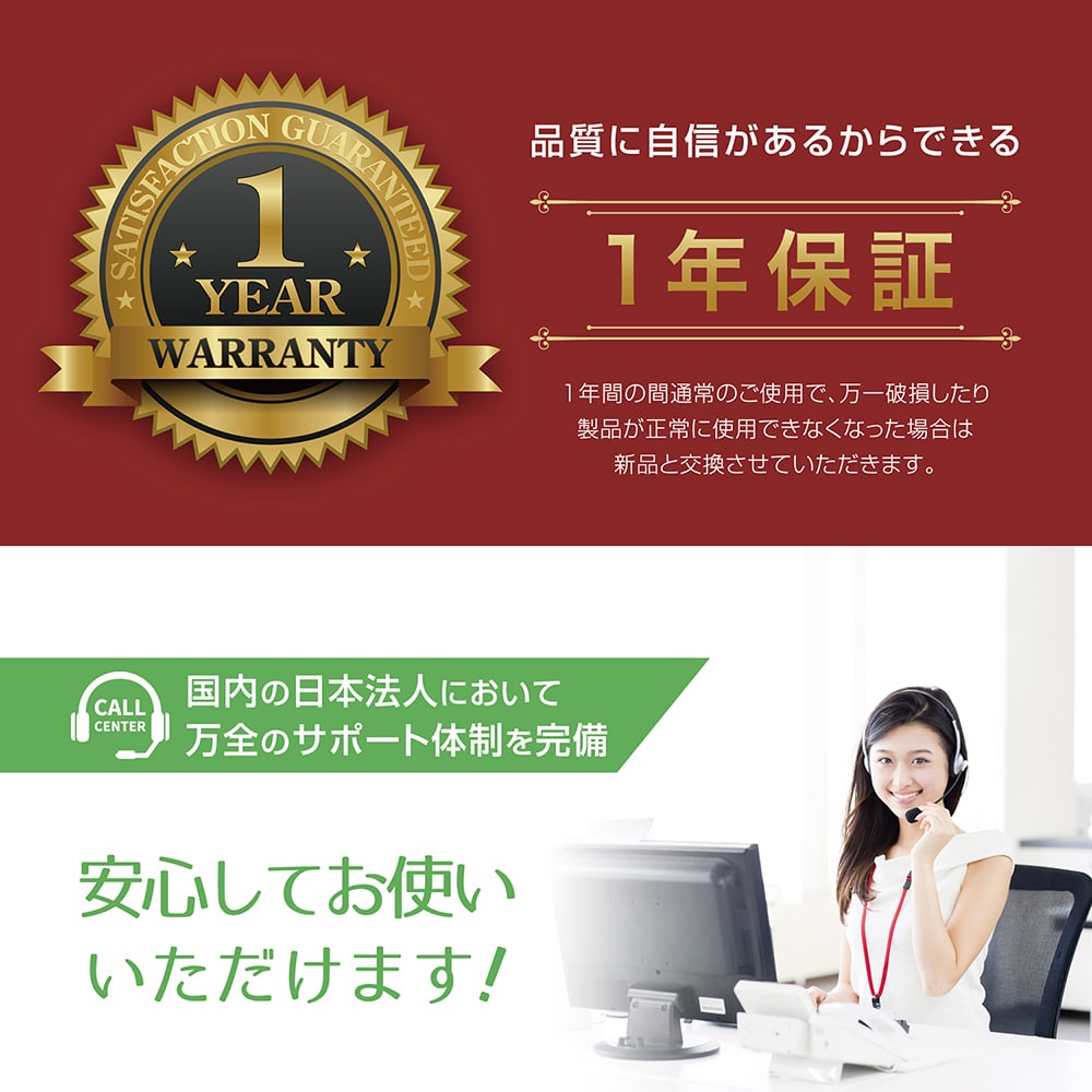 メーカー日本法人による1年間の製品保証と充実のカスタマーサポートを提供します。